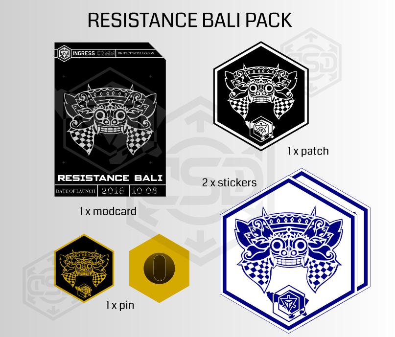 Resistance Bali Pack, consist Biocard, Lapel Pin, Patches, and Sticker.