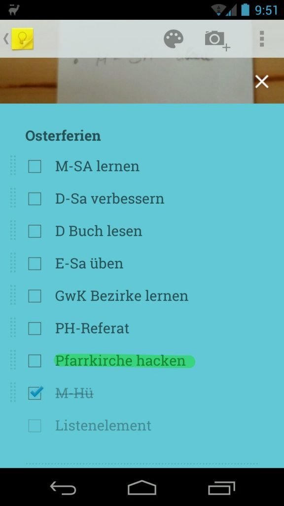 ToDo Liste für Osterferien. Pfarrkirche in Gallneukirchen hacken. Wie die Liste für außenstehende aus sehen muss…^^
