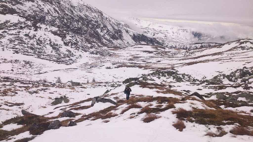 Aufgewachsen im Münchner Flachland, kam ich nach einigen Höhenmetern rasch ins Zweifeln, ob die Idee so genial war, wie sie mir noch am Abend davor erschienen war. Der Schnee, durch den wir uns kämpften reichte uns meist bis zum Knie und teilweise bis zur Hüfte.