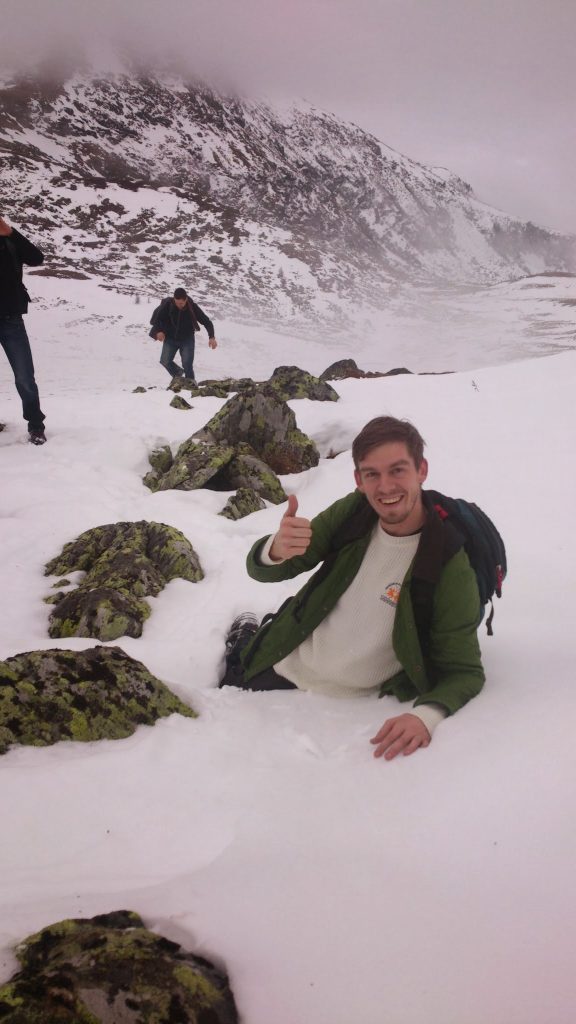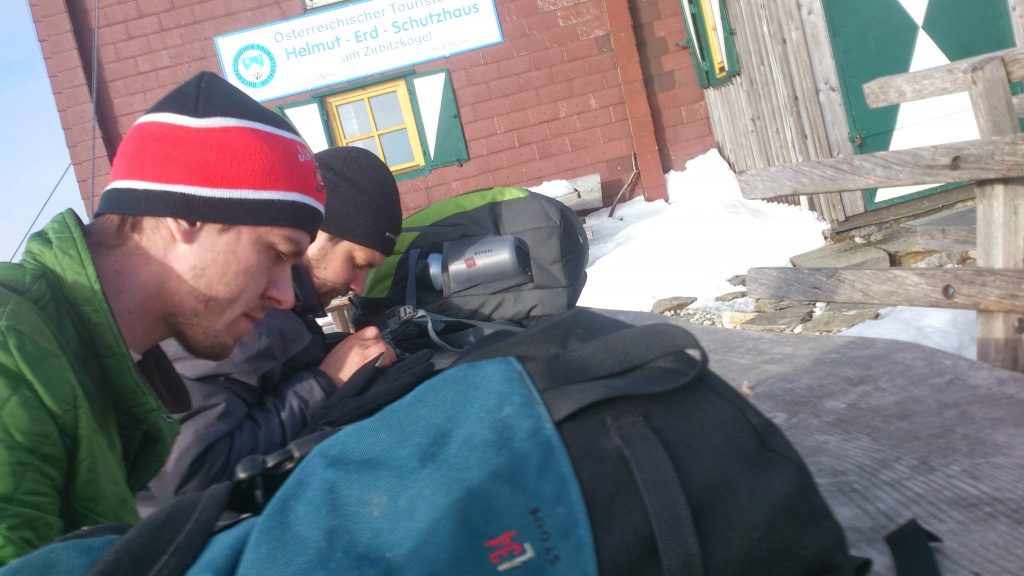 During our climb through mostly knee-deep, at times even waist deep snow, I had my doubts about the brilliancy of this idea, but my fellow agents kept our spirits high. Midway to the top, with no GPS Signal and heavy fog surrounding us we got lost for a while. Following a strong xm flow to the top of the moutain, we eventually reached “Scharfes Eck”, a portal on the neighboring mountain peak. Finally the fog cleared out and we made our way to the Zirbitzkogel.