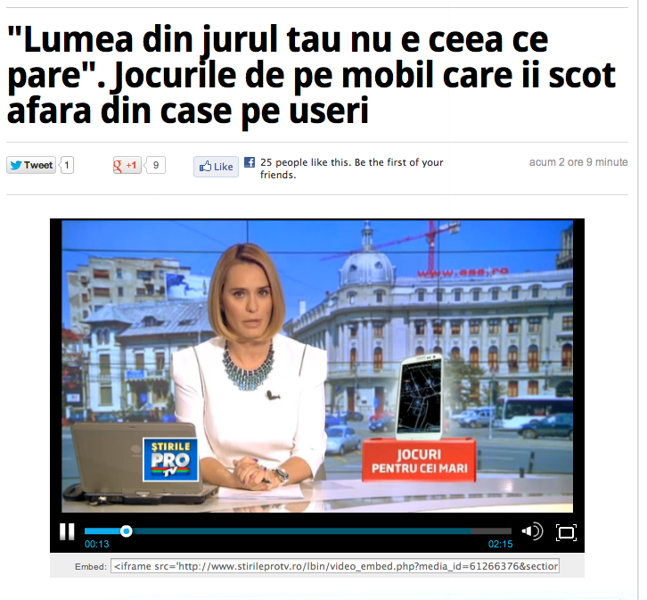 #ingress is huge in Romania! :) Feb. 5,2013 Hinterlasse einen Kommentar ingress, Markus W (unclasp) Originally shared by Brandon Badger #ingress is huge in Romania! 🙂 http://stirileprotv.ro/stiri/ilikeit/lumea-din-jurul-tau-nu-e-ceea-ce-pare-jocurile-de-pe-mobil-care-ii-scot-afara-din-case-pe-useri.html