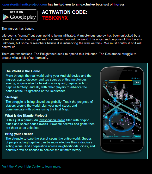 Ingress Activation Code